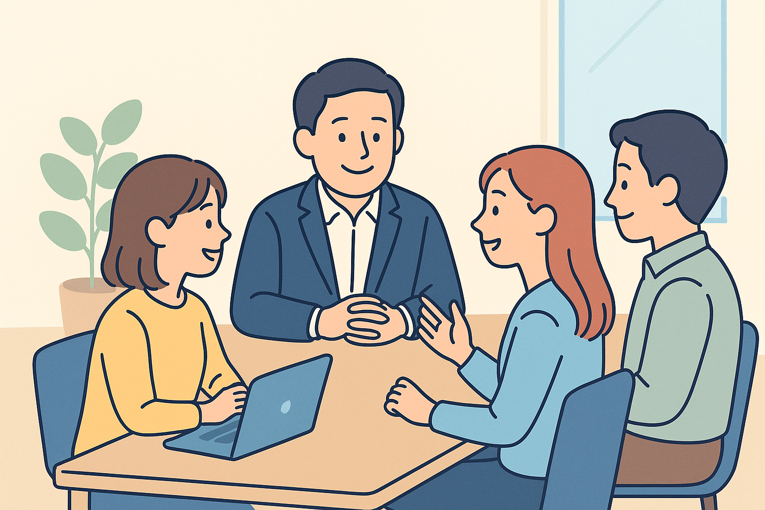 - 傾聴力:まず相手の話を最後まで聴く。アドバイスよりも共感を優先し、安心感を与える。
