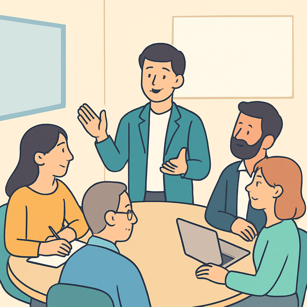 - 発言を引き出し、論点を整理する:一方通行にせず、複数の視点を引き出して要約する。