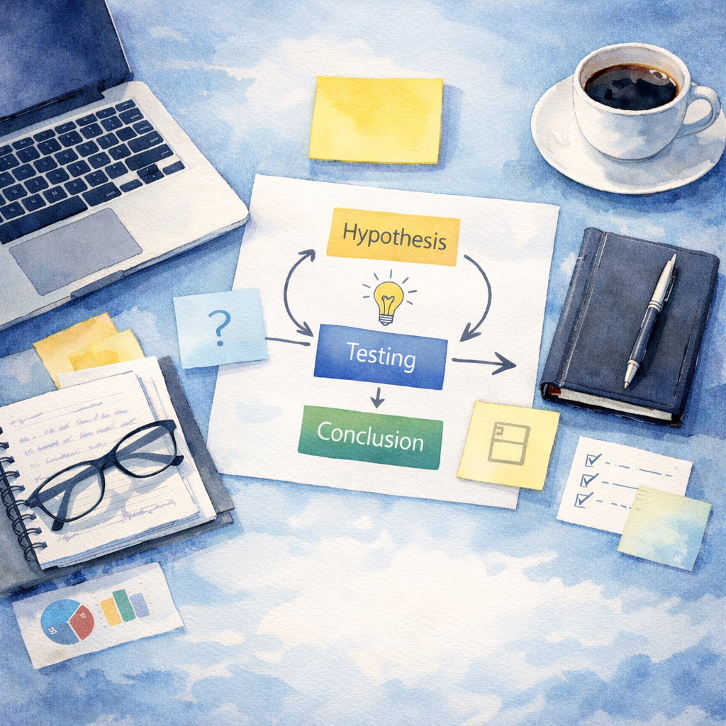 仮説思考とは、限られた情報の中でも「おそらくこうだろう」という当たりをつけ、検証しながら前に進む思考法です。最初から完璧な答えを探すのではなく、最短距離で成果に近づくための戦略ともいえます。