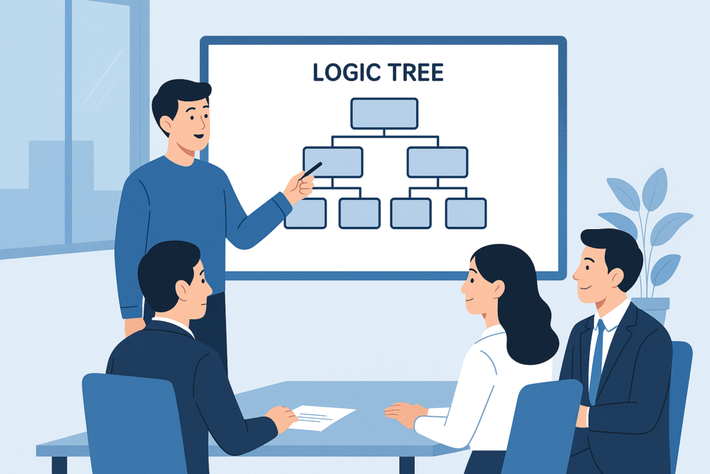 ロジックツリーとは、問題の原因や要素を木の枝のように分解して整理する思考法です。問題解決の分野ではマッキンゼーなどのコンサルティングファームが多用し、体系的な分析手法として知られています。