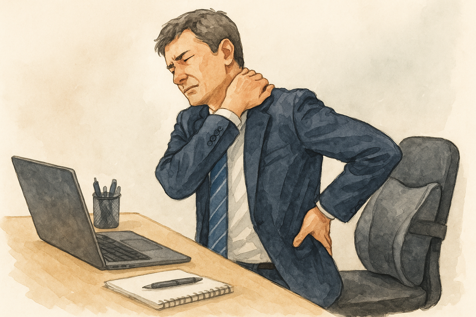 長時間のデスクワーク。 気づいたころには肩がカチコチ、腰がバキバキ……。